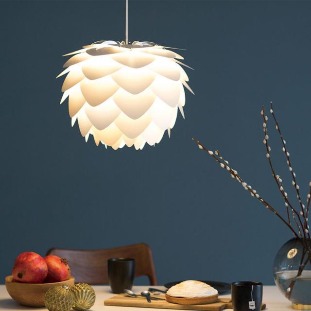 蓮の花や松ぼっくりに見えるデザインが電気をつけていない時でもお部屋のアクセントになります。豊富なカラーバリエーションの中からインテリアに合ったカラーをお選びいただけます。コードのカラーはホワイトです。