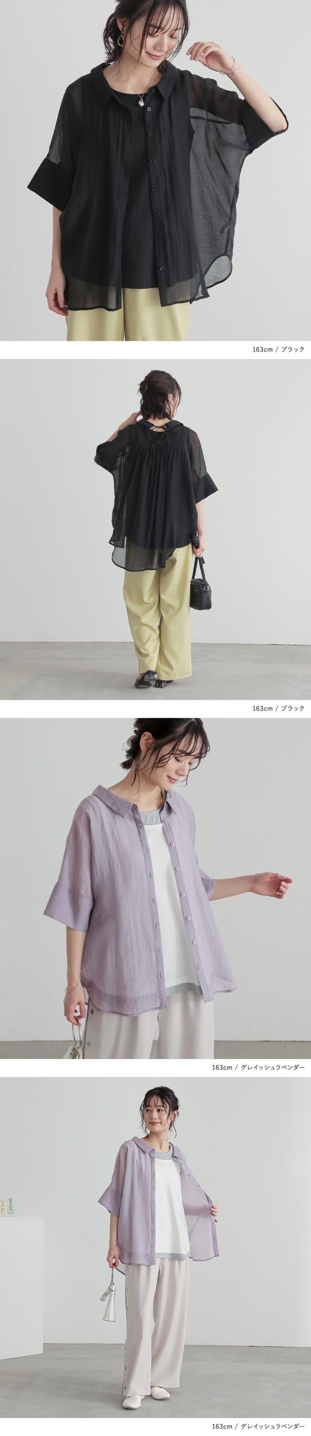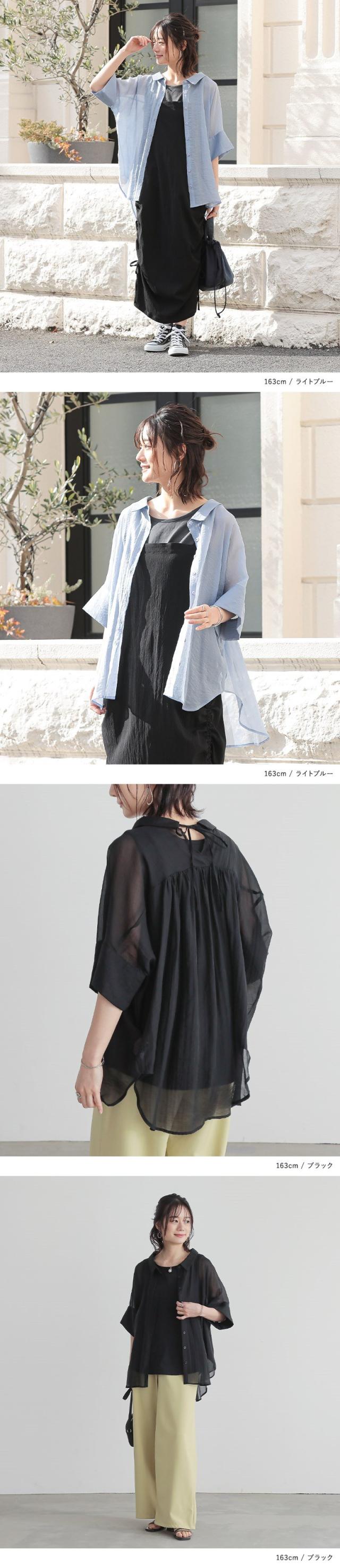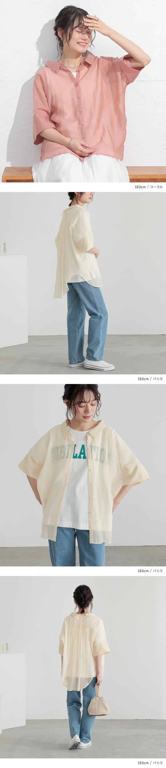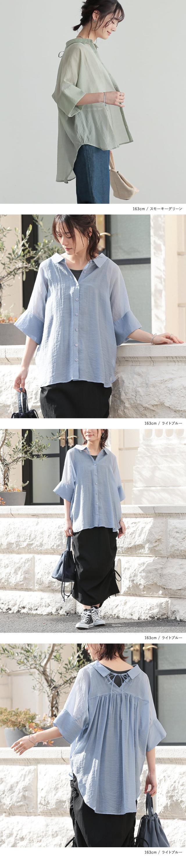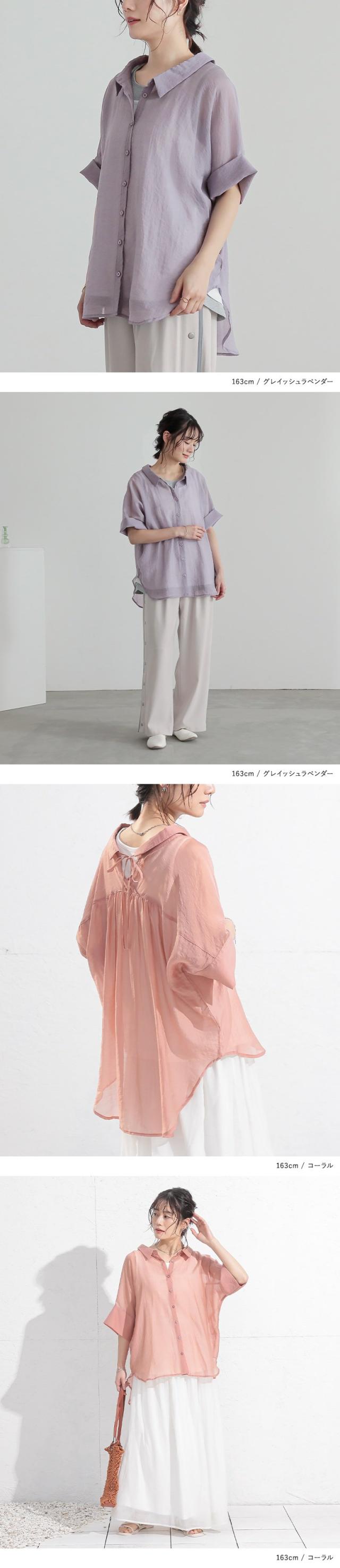 レディース トップス ブラウス シャツ ロングシャツ ボタンシャツ 前開きシャツ 襟付きシャツ 羽織 襟付き 抜き襟 半袖 五分袖 折り返し袖 ワイドスリーブ ドロップショルダー ギャザー ヨーク リボン バックリボン バックシャン 無地 シワ加工 シースルー シアー ラウンドヘム 透け感 レイヤード 重ね着 おうちで洗える 春夏 女子会 カジュアル お出掛け 旅行 リゾート 通勤 通学 お買い物 大人女子 大人可愛い お洒落可愛い 上品 きれいめ モード シンプル ナチュラル ニュアンス ラフ Sサイズ Mサイズ Lサイズ LLサイズ 3Lサイズ XLサイズ フリーサイズ ぽっちゃり 体型カバー 大きいサイズ n'OrLABEL ノア—ルレーベル グリーン 緑 スモーキーグリーン ピンク 桃色 コーラル パープル 紫 グレイッシュラベンダー ブラック 黒 くすみカラー スモーキーカラー バニラ ホワイト 白 ライトブルー 青 水色 sheertops 【トップス】[ID]thn0176