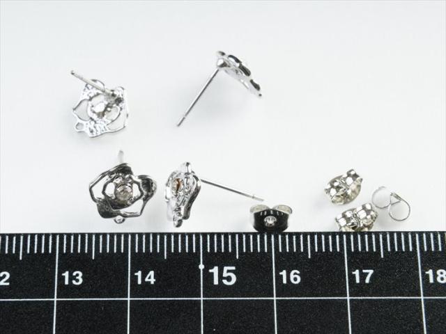 【内容詳細】ピアスパーツ 316L ステンレス ニッケルフリー 変退色防止加工済 バラ 透かし 9mm シルバー 10ペア 0.9cm ストーン付