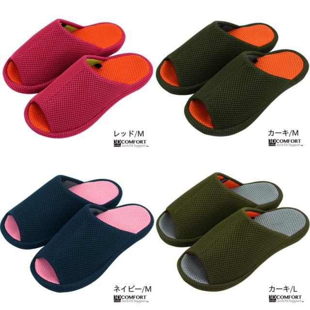 3D COMFORT スリッパ スポーツテイスト オールメッシュ NDAA7906-07 3Dコンフォート (ok-3ds8900) ラッピング無料 足にぴったりfit おしゃれ ルームシューズ 健康スリッパ 健康サンダル オールシーズン 快適 メッシュ素材 脚革命スリッパ agesugi_snk
