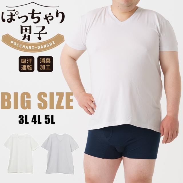 大きいサイズ ぽっちゃり 半袖 Vネック シャツ 吸汗 速乾 消臭 メンズ 年間 肌着 下着 インナー 綿混 紳士 男性 M0111X-R