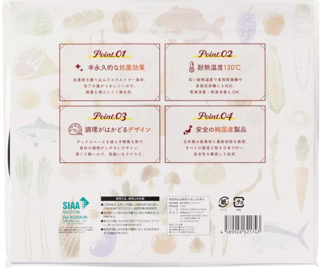 | 商品の説明 | 包丁との相性の良い木製の感触に似た合成ゴムエラストマーは、刃あたりが柔らかく手の負担が軽減されます。プラスチックのように水の弾きがよく、乾きも早く雑菌の繁殖も防ぎます。傷がつきにくく変形しにくく末永く使えます。抗菌剤入りなので、菌の繁殖を抑え末永く衛生的に安心してお使いいただけます。薄くて軽くて柔らかい!取り扱いもラクラクです。汚れたらサッと一拭き、色もつきにくく汚れも目立たない、食材が映えるシックなブラックカラー。片面に可愛いロゴ入り!素材の使い分けにも活用できます。 |