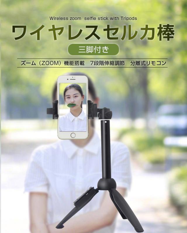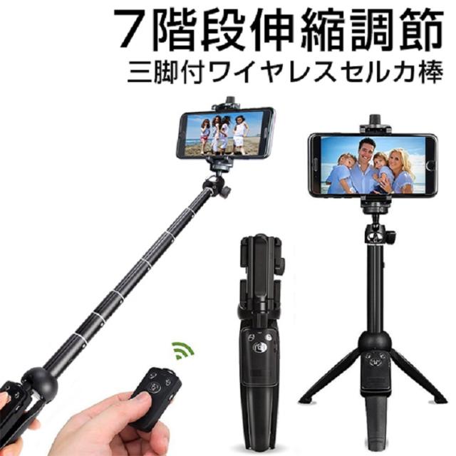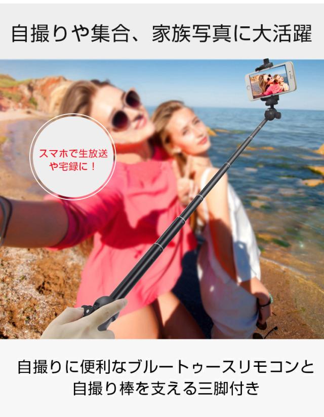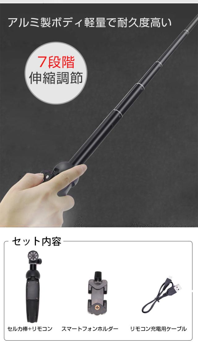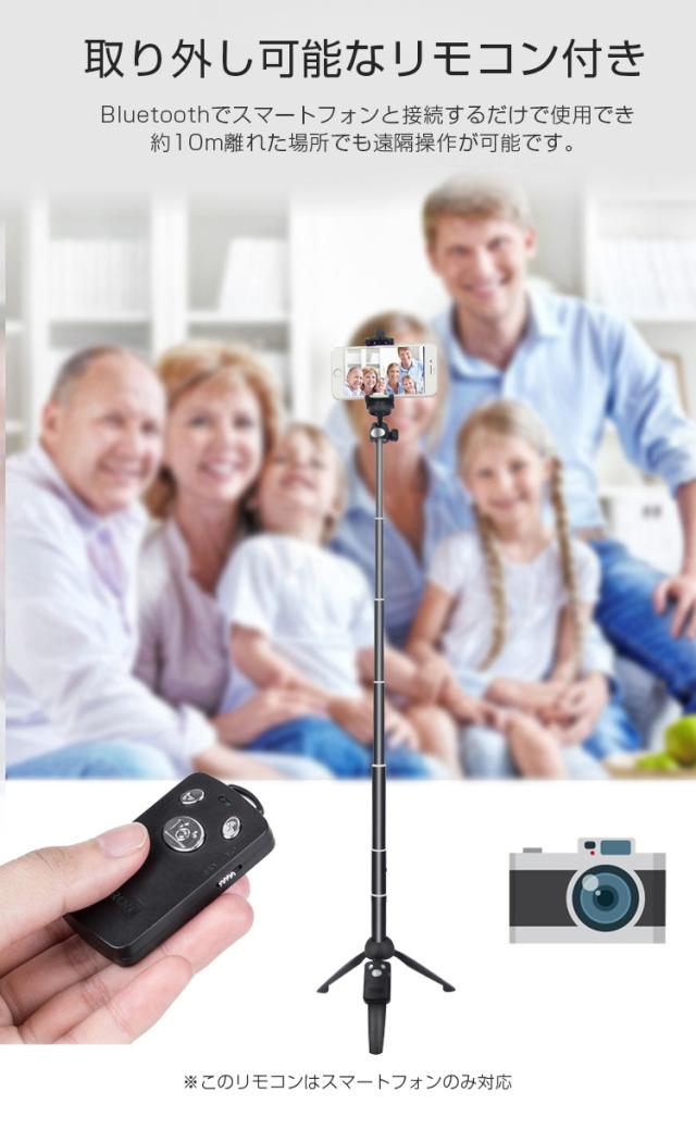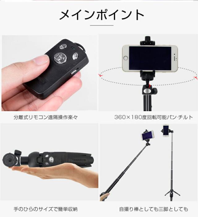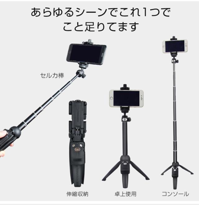 自撮り棒 セルカ棒 リモコン付 Bluetooth スマホ三脚 じどり棒 自分撮り 無線 伸縮式 折り畳み 360度回転