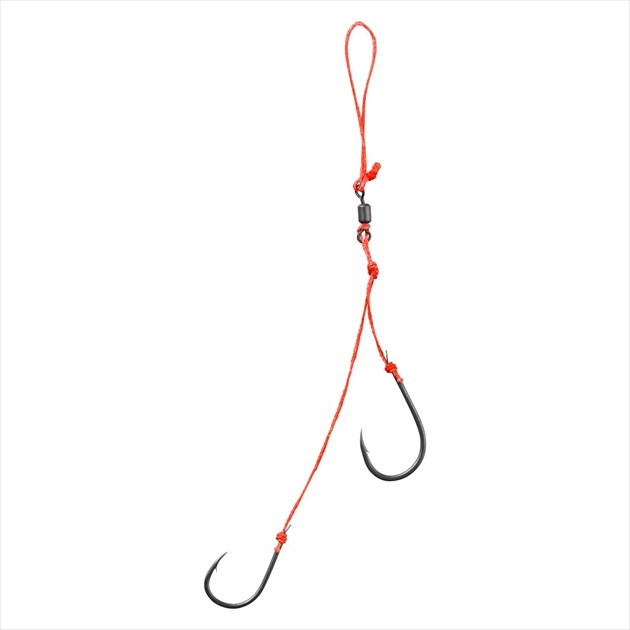 絡み激減!!フロロ芯入りPEライン。親針も孫針も貫通力抜群のサクサス仕様。フロロ芯入りPEライン使用。張りがある複合ラインの為、フォール・キャスト時のリーダー絡みが激減。状況に応じて選べる4種類のリグをラインナップ。リーダーのダメージを大幅減少させる驚異の回転力サクサススイベル付き。