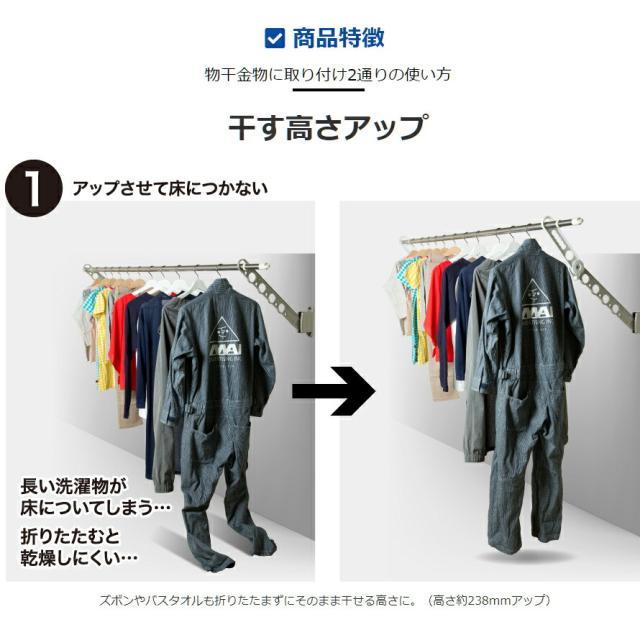 | 物干アームの高さアップ、延長 |