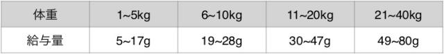・上記給餌量は目安ですので、愛犬のコンディションを観察しながら与えてください。
