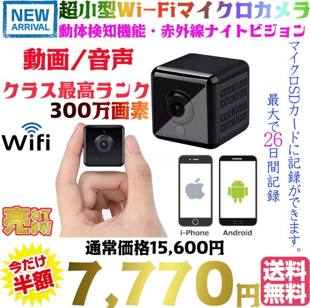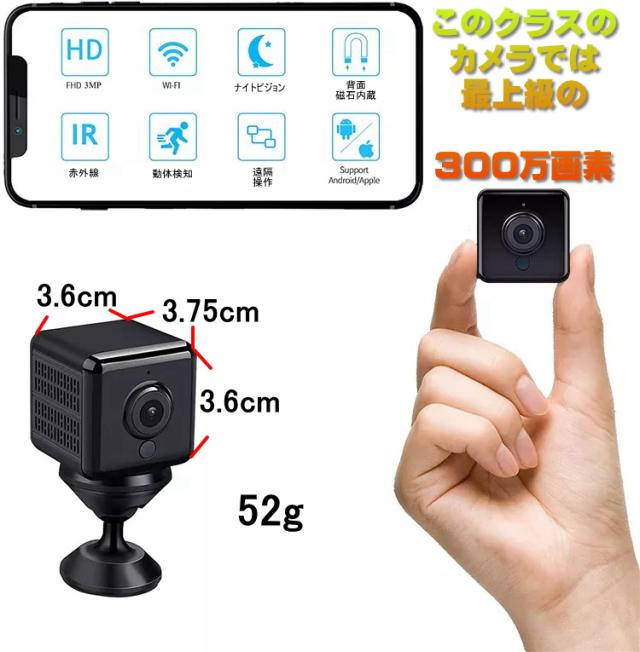 超小型、3MP、サイコロ型、軽量、Wi-Fiネット通信、AP通信、赤外線ナイトビジョン搭載、動体検知機能搭載、マイクロSDカード録画、長期間録画保存