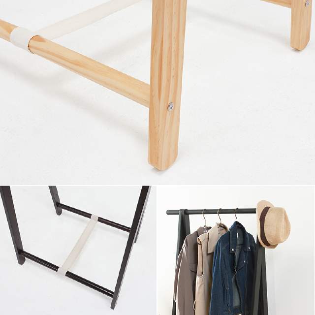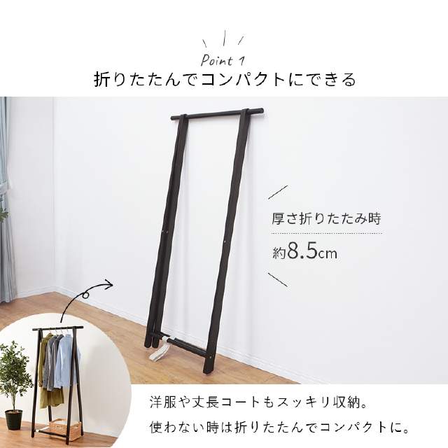 必要な時だけ出して、さっと折りたためる天然木ハンガーラック