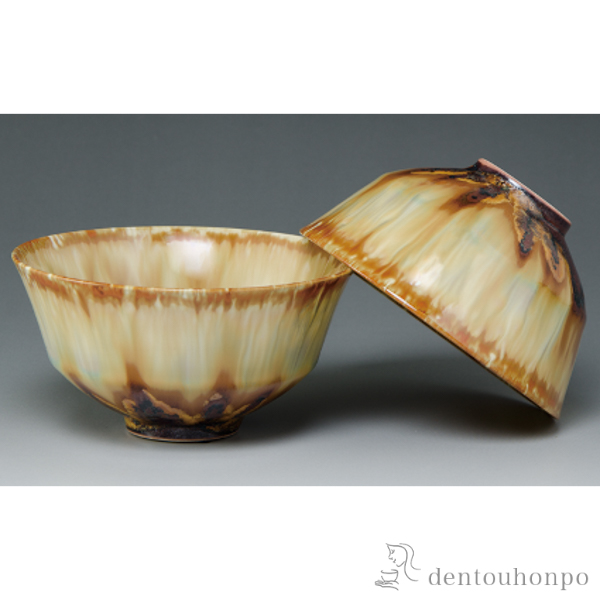 「送料無料」 組飯碗 釉流彩(茶) ( 退職祝い 定年 ごはん 白ご飯 お茶碗 飯碗 おすすめ 清水焼 京焼 結婚 出産 内祝い )
