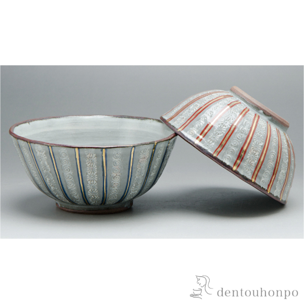 「送料無料」 組飯碗 縞三島 ( 退職祝い 定年 ごはん 白ご飯 お茶碗 飯碗 おすすめ 清水焼 京焼 結婚 出産 内祝い 引き出物 金婚式 )