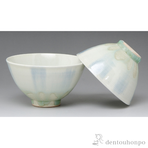 端正な器体に、異なる釉薬を重ねて掛けた飯碗です。釉薬の自然に流れる様が趣を添えています。