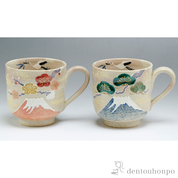 「送料無料」 ペアマグカップ 祝い富士 ( 退職祝い 定年 プレゼント デザイン マグ オリジナル タンブラー セット 清水焼 京焼 )