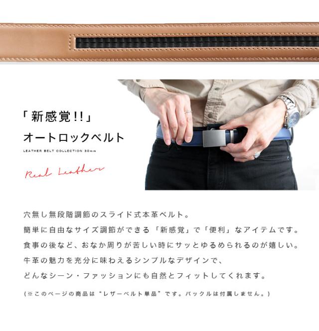 クリックベルト 幅30mm ベルトのみ バックルなし メンズ レディース ユニセックス 牛革 オートロック 無段階調整 替えベルト シンプル 大きいサイズ 穴無し メンズベルト ブラック ブラウン ダークブラウン ネイビー レッド モカ コニャック ab-bt31