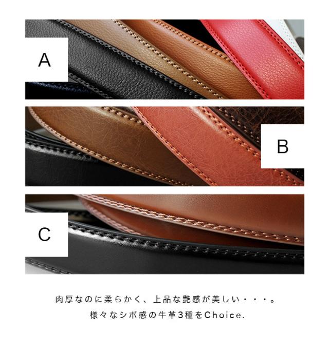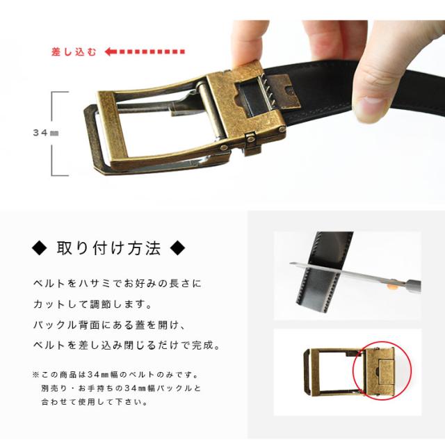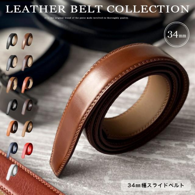 クリックベルト 幅34mm ベルトのみ バックルなし メンズ レディース ユニセックス 牛革 オートロック 無段階調整 替えベルト シンプル 大きいサイズ 穴無し メンズベルト ブラック ブラウン ダークブラウン ネイビー レッド モカ コニャック ab-bt35