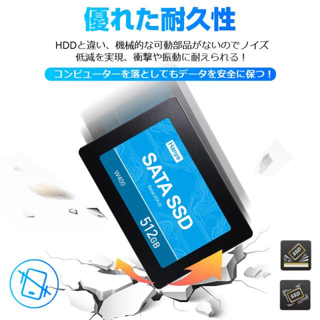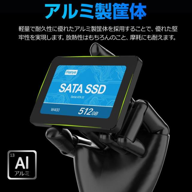 Hanye製 SSD 512GB 内蔵 2.5インチ 7mm SATAIII 6Gb/s R:520MB/s 3D Nand 高耐久TLC アルミ製筐体 W400 正規代理店品 国内3年保証 ネコポス送料無料 ポイント消化