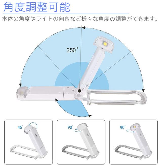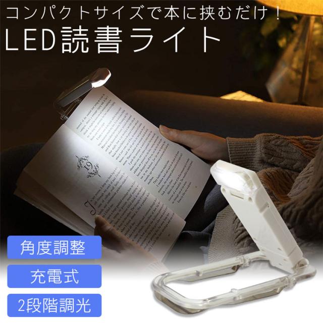 LED 読書ライト 読書灯 ブックライト クリップ 明るさ調整 角度調整 充電式 バッテリー 本 寝室 読書 ライト 照明 小型 コンパクト 折りたたみ PR-READLIGHT【メール便 送料無料】