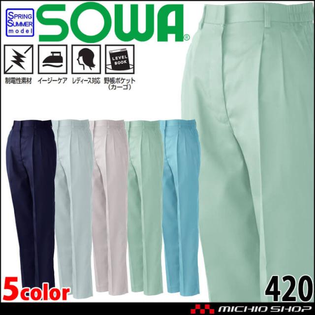 SOWA 桑和 レディースツータックスラックス 420 作業服 作業着 春夏 制電性