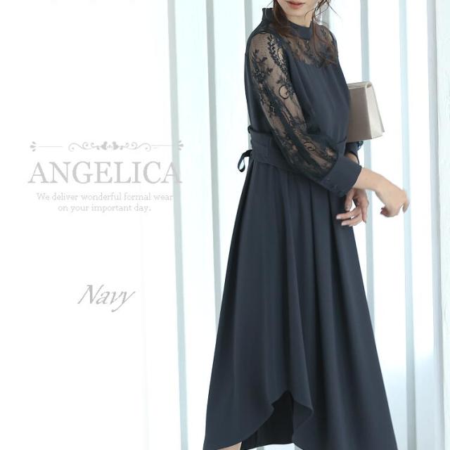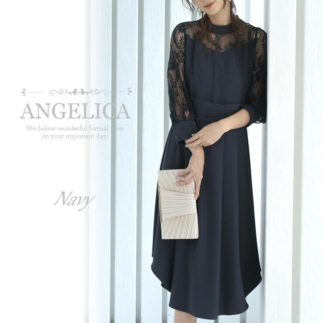 ハイネック フォーマルドレス フォーマル ワンピース ドレス パーティードレス 膝下丈 ロング丈 結婚式 ワンピース 二次会 ファッション フォーマル お呼ばれ 大きいサイズ ミモレ丈 ロング丈 レース 半袖 春 夏 秋 冬 披露宴 ワンピース 紺 ネイビー