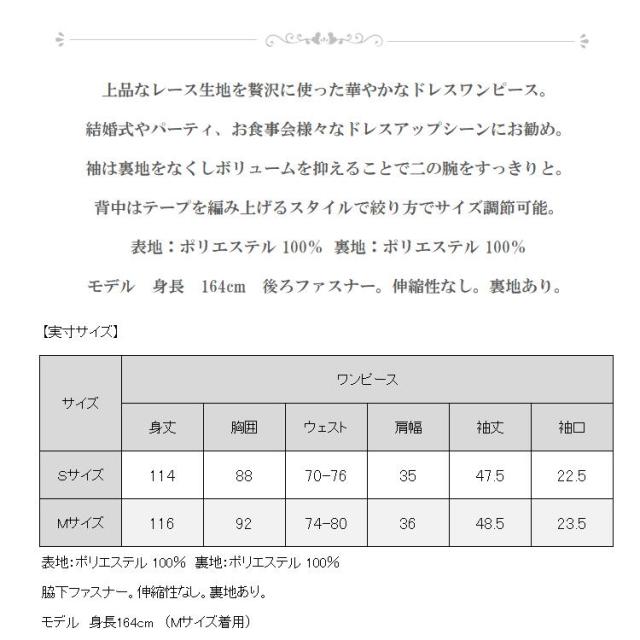 上品なレース生地を贅沢に使った華やかなドレスワンピース。