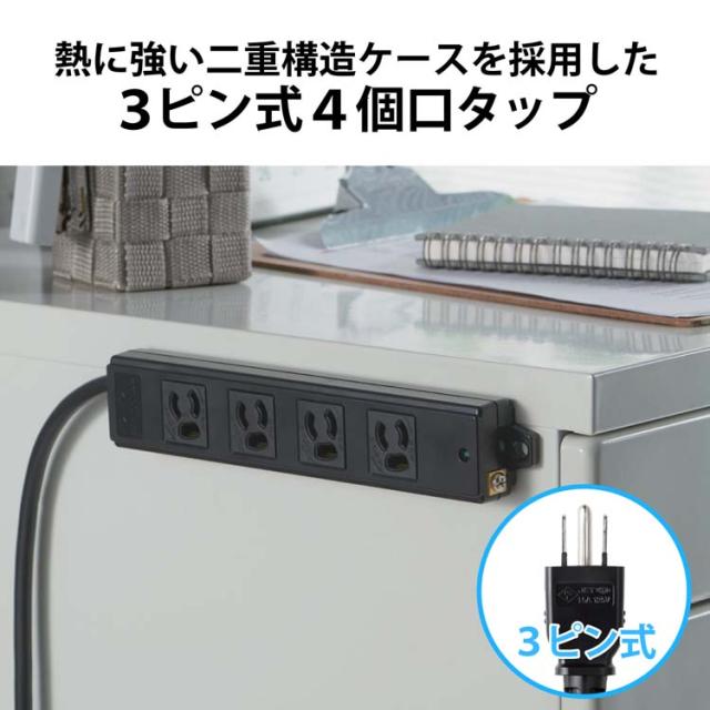 熱に強い二重構造ケースを採用した3ピン式4個口タップ