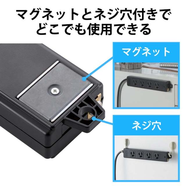 【延長コード 電源タップ 舞台・スタジオ照明用 3P 4個口 黒 3m マグネット付 抜け止めの商品詳細】