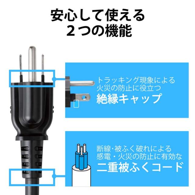 ●プラグのN極とL極の根本には絶縁キャップを搭載し、トラッキング現象による火災の防止に役立ちます。