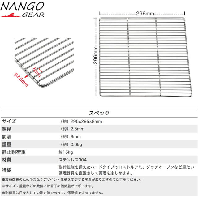 棒径が約Φ2.5mmでグリルアミとしてはもちろん、ダッチオーブンなど、重たい調理器具を載せる架台としても使えます。
