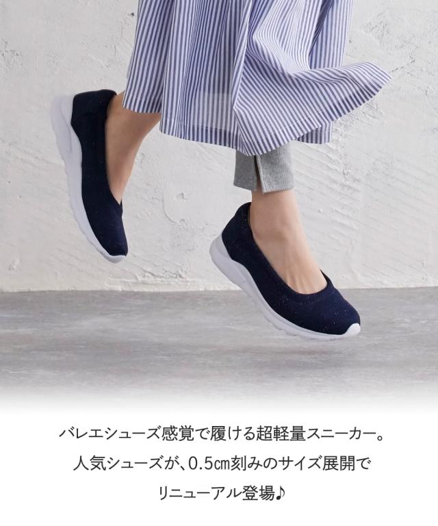 [keyword] 靴 レディースシューズ バッグ アクセサリー 大きいサイズ レディース ローヒール ぺたんこ フラット 楽ちん 疲れにくい 低い かかと ミドルヒール 4cm〜 [comment]バレエシューズ感覚で足にフィットして履きやすい超軽量スニーカー。