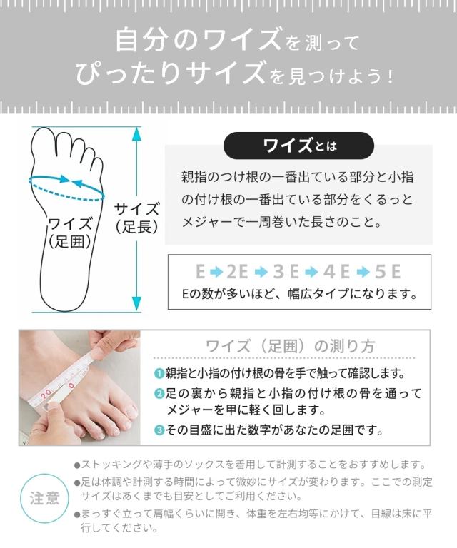 材質=合成繊維 底材=合成底 底の厚さ(後ろ)=約4cm ワイズ=4E ネイビーラメ・グレーラメ・黒ラメは、ラメ感のある素材を使用 中敷は取り外して乾かせます。 重量=約170g(4E:24.5cm片足) 原産国:中国製