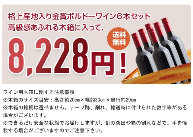 【送料無料】ワインセット 第23弾 木箱入 金賞 ボルドー 6本 セット カベルネ・ソーヴィニヨン メルロー オール金賞