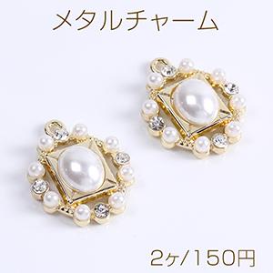 メタルチャーム パール&ラインストーン付き 19×24mm ゴールド(2ヶ)