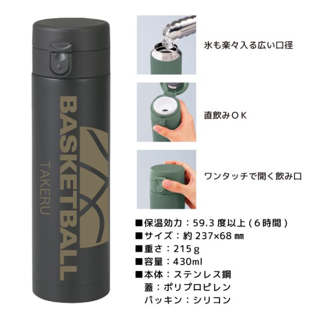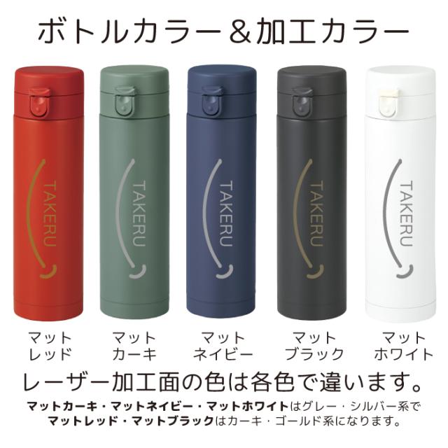 ステンレスボトル 430ml 名入れ 水筒 軽量ボトル プレゼント デザイン おしゃれ 保温 誕生日 記念日 記念品 部活 マグボトル タンブラー 黒 赤 青 緑 白 紺 ブラック レッド ブルー グリーン ホワイト カーキ ネイビー マット zakka031