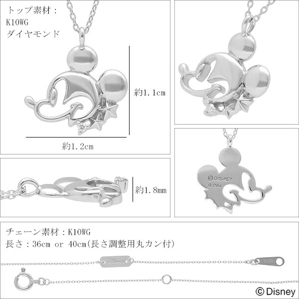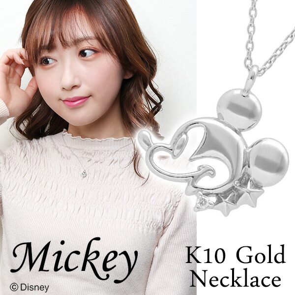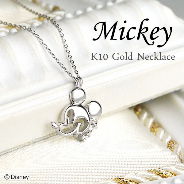 ディズニー ミッキー ネックレス ミッキーマウス K10 ホワイトゴールド ダイヤモンド Disney 公式 ディズニーネックレス オフィシャル ブランド レディース グッズ