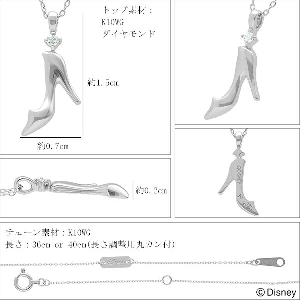 ディズニー シンデレラ ガラスの靴 ゴールド ネックレス Disney 公式 ディズニーネックレス オフィシャル プリンセス K10 ホワイト ブランド レディース グッズ