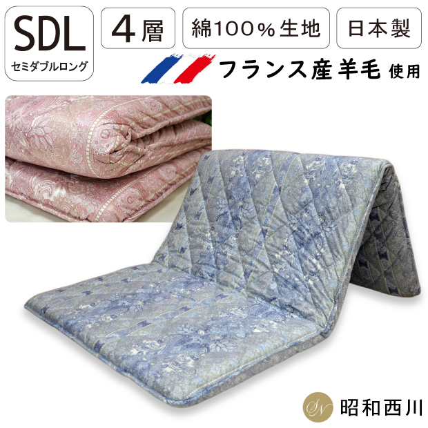 敷布団 昭和西川 羊毛混 四層 固綿敷き布団 セミダブル 羊毛敷き布団 フランス産ウール50% 日本製 4層 固わた セミダブルロング 多層 堅め 羊毛入り固綿 厚め ふっくら ボリューム 敷きふとん しき布団 ウール しきふとん