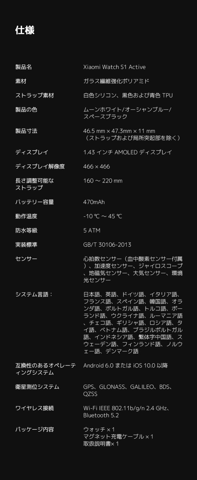 商品名:Xiaomi Watch S1 active スマートウォッチ グローバル版