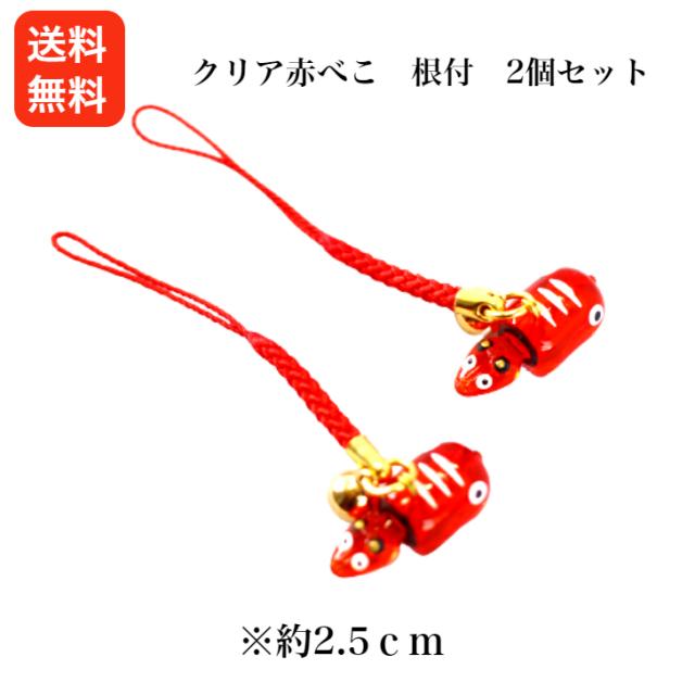 クリア赤べこ 根付 2個セット あかべこ 会津赤べこ 赤ベコ アカベコ 会津土産 会津民芸品 山鹿 まざっせこらっせ