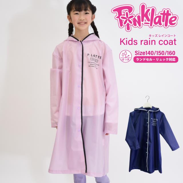 レインコート キッズ 子供 PINK-latte ピンクラテ 無地 パイピング ランドセル対応 リュック対応 女の子 かわいい おしゃれ 入園 入学 通学 カッパ 雨具 自転車 サイクル 反射テープ ブランド 送料無料 05002302