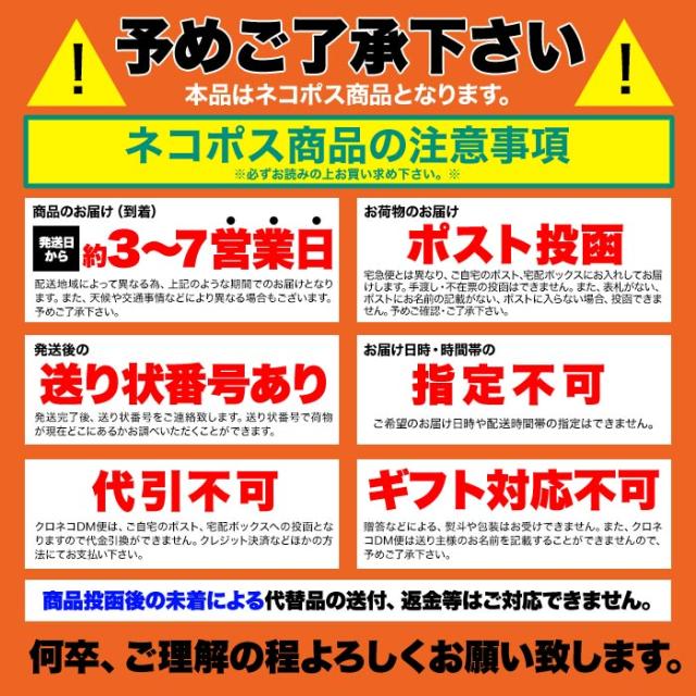 | 注意事項 | 予めご了承下さい!! ・商品発送後お届けまで【 約3〜7営業日 】にてお届け予定となります。 |