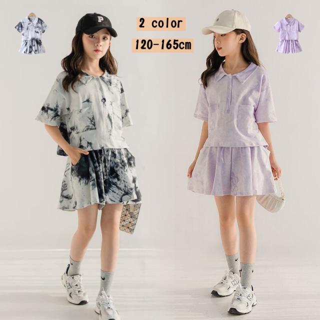 スポーツウェア スウェット 上下セット 女の子 子供 キッズ tシャツ 半袖Tシャツ セットアップ スカパン スカートパンツ ジャージ トレーナー 120 130 140 150 160 165