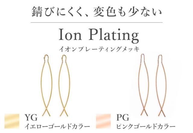 「 金属アレルギー 」を起こしにくいチタン素材の「 IonPlating ( イオンプレーティング )メッキ 」を採用。通常のコーティングと比べ、半分以下の薄さで5倍以上の強度を保ちます。さらに密着性にも優れ、剥がれにくいのも特徴。お肌に優しく安心です。「 セカンドピアス 」としてもおすすめ!