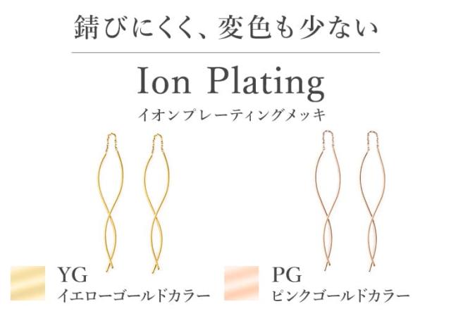 「 金属アレルギー 」を起こしにくいチタン素材の「 IonPlating ( イオンプレーティング )メッキ 」を採用。通常のコーティングと比べ、半分以下の薄さで5倍以上の強度を保ちます。さらに密着性にも優れ、剥がれにくいのも特徴。お肌に優しく安心です。「 セカンドピアス 」としてもおすすめ!
