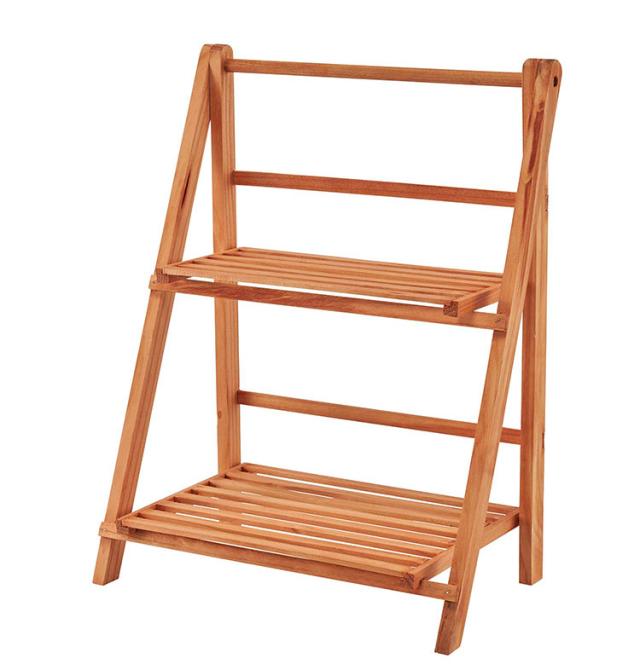 天然木 オープンラック 2段 プランター台 フラワースタンド 花台 ウッドラック ガーデニング ガーデンラック 棚 シェルフ 木製 玄関収納 おしゃれ【送料無料】