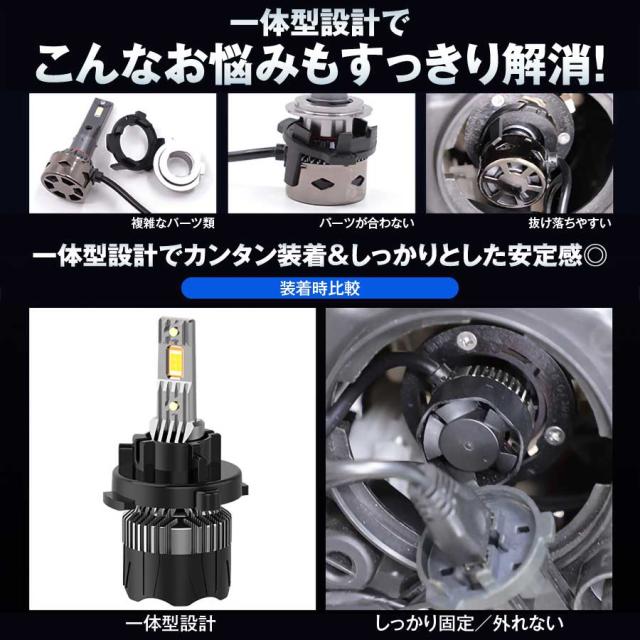 LEDヘッドライト H4 一体型 ロービーム ハイビーム 明るい ヘッドライト 車用 カー用品 放熱 光軸回転 調節可能 車ヘッドライト