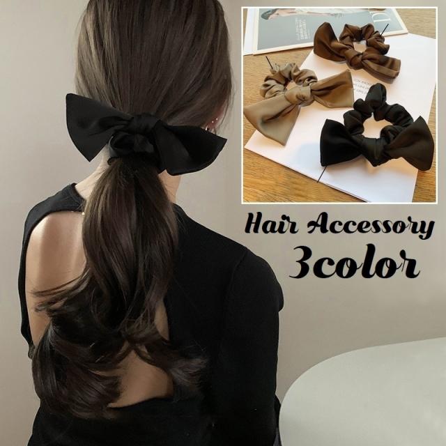 シュシュ ヘアゴム リボン ヘアアクセサリー 髪飾り 髪留め レディース サテン調 無地 シンプル 上品 まとめ髪 かわいい お
