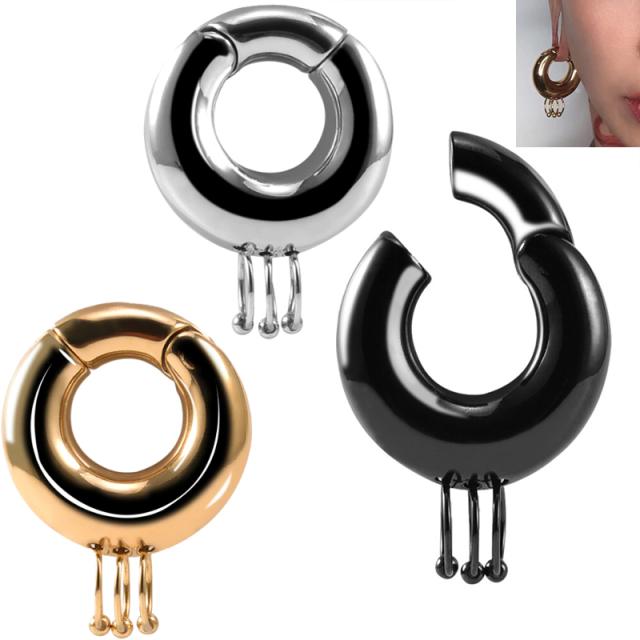 ヘビー級の磁石で開閉できるセグメントクリッカーに3個のキャプティブビーズリング型のシームレスリングを通したユニークな0ゲージのボディピアス。