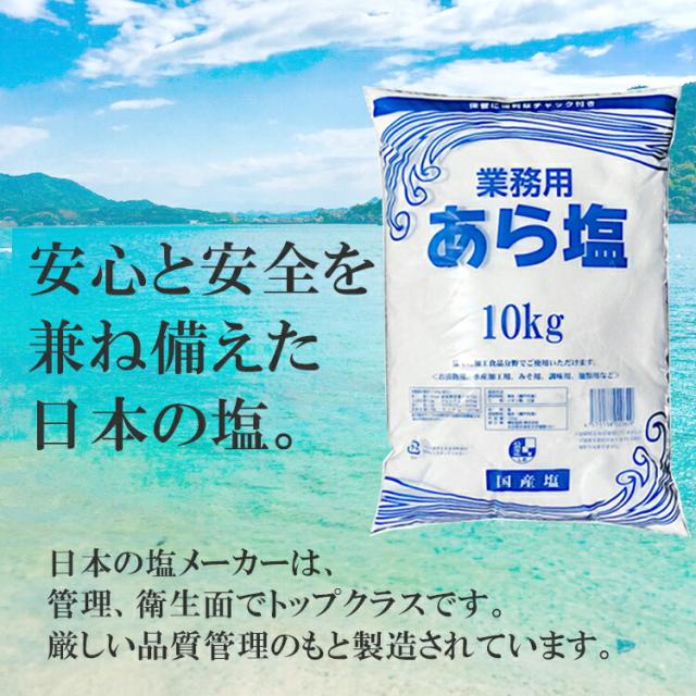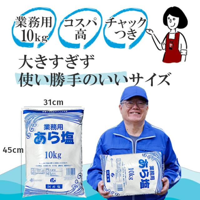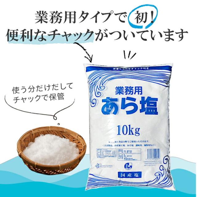 業務用 あら塩<チャック付> 10kg×2袋(計20kg)/ 宅配便 送料無料 塩 ソルト 調味料 海塩 岡山県産 粗塩 並塩 漬物 梅干し 天ぷら パスタ 魚介料理 肉料理 BBQ 盛り塩 こわけや
