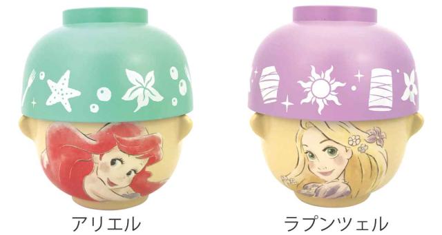 ディズニープリンセスが描かれた汁椀と茶碗のセット