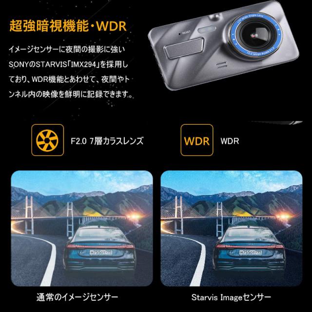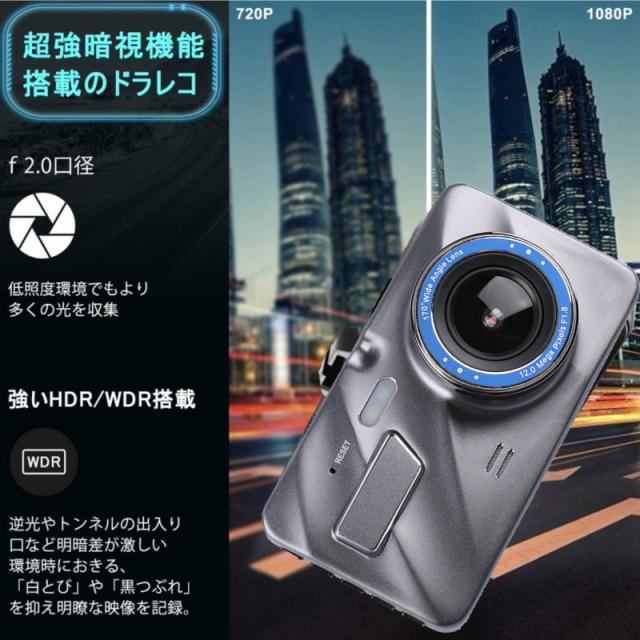 ★即納★ ドライブレコーダー 前後搭載カメラ 前後 2カメラ 高画質 常時録画 超広角 駐車監視 暗視機能 防水構造 デジタル スマートルーム モニター
