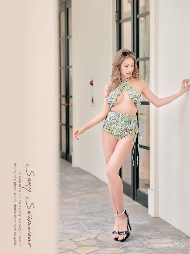 ☆大胆SEXYに下乳見せで視線を集めちゃうクロスホルダー水着は普段は見えないところをセクシーに主張してくれる派手カワなアニマル柄ビキニ♪